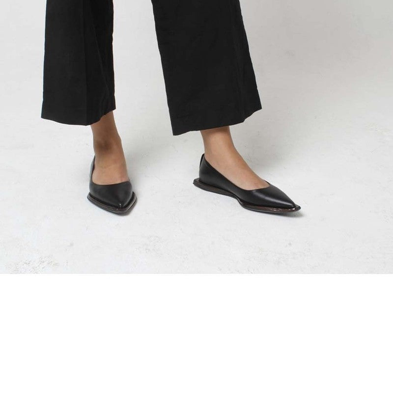 Modern neutrality and artisanal comfort – ADALGISA BLACK+BROWN NAPPA is a soft lambskin flat shoe that blends black and brown leather in a refined dual-tone design.