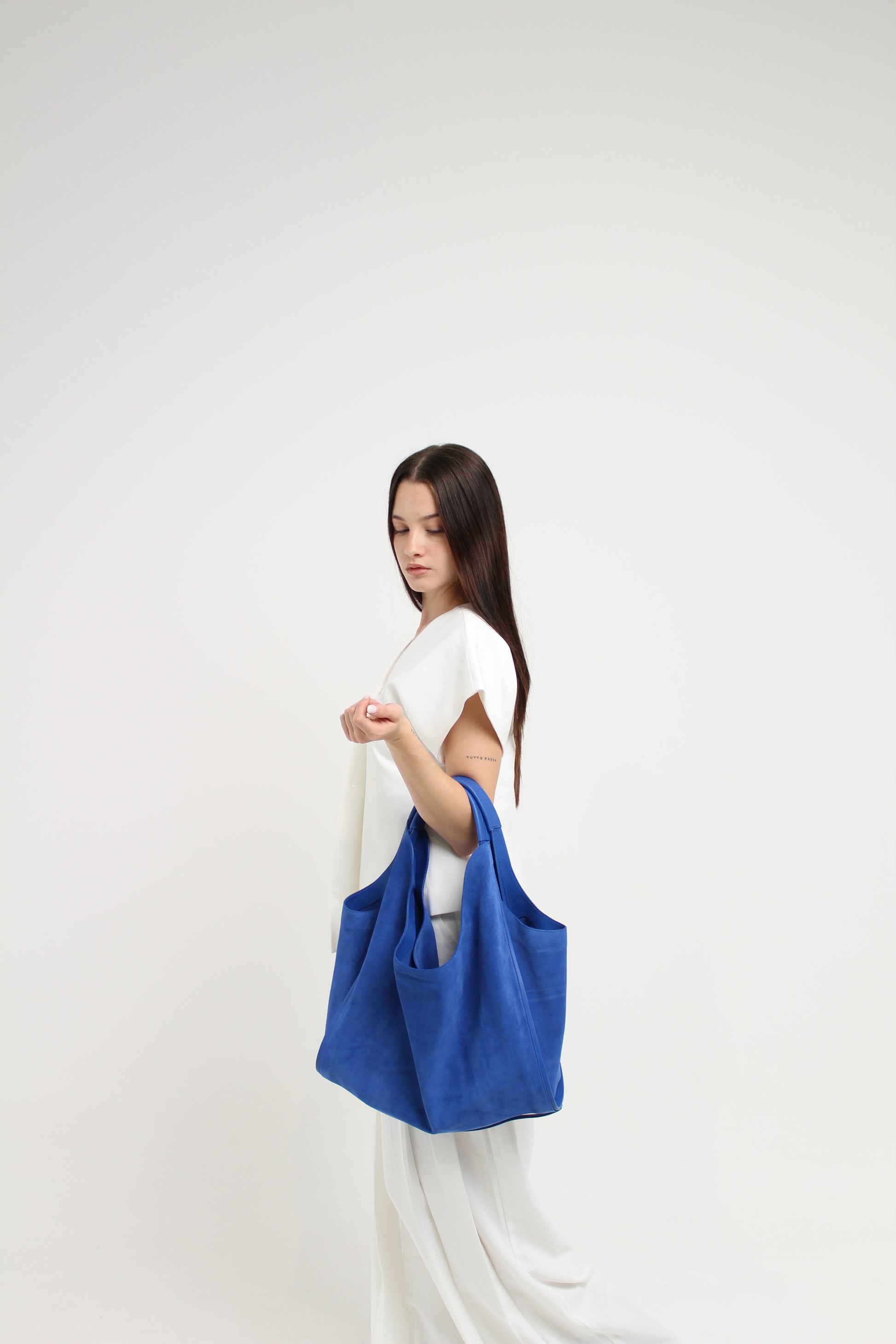 Minimalist elegance in a practical format – the EDVIGE SUEDE BLUETTE is a large, unlined suede bag designed for refined simplicity and daily use.