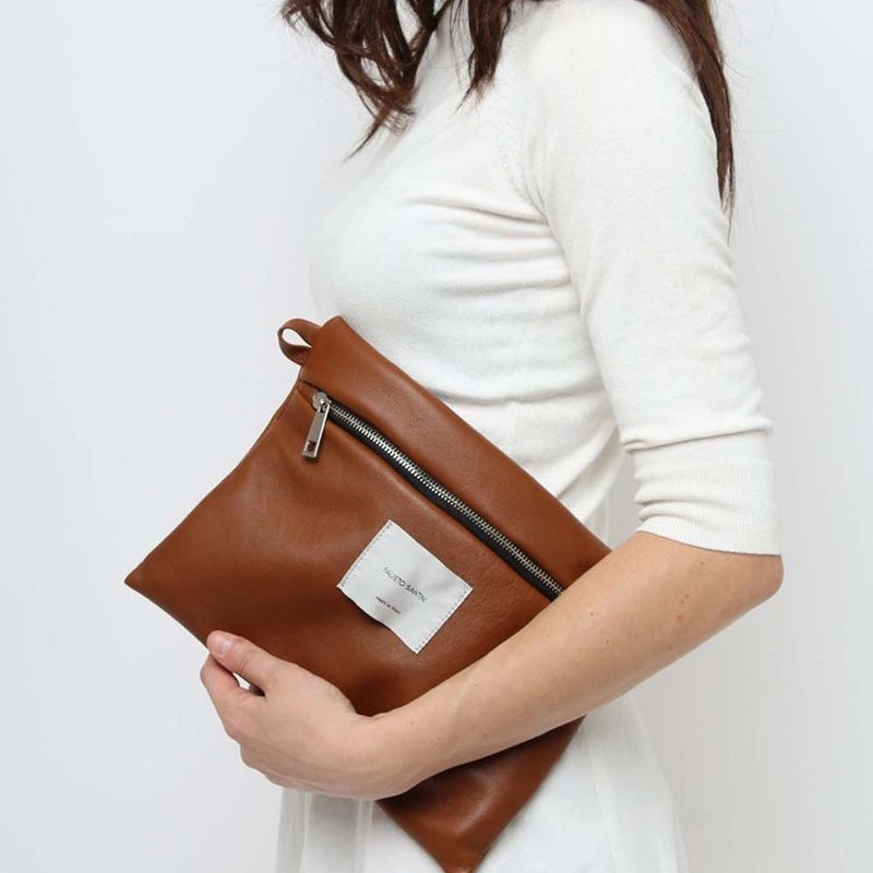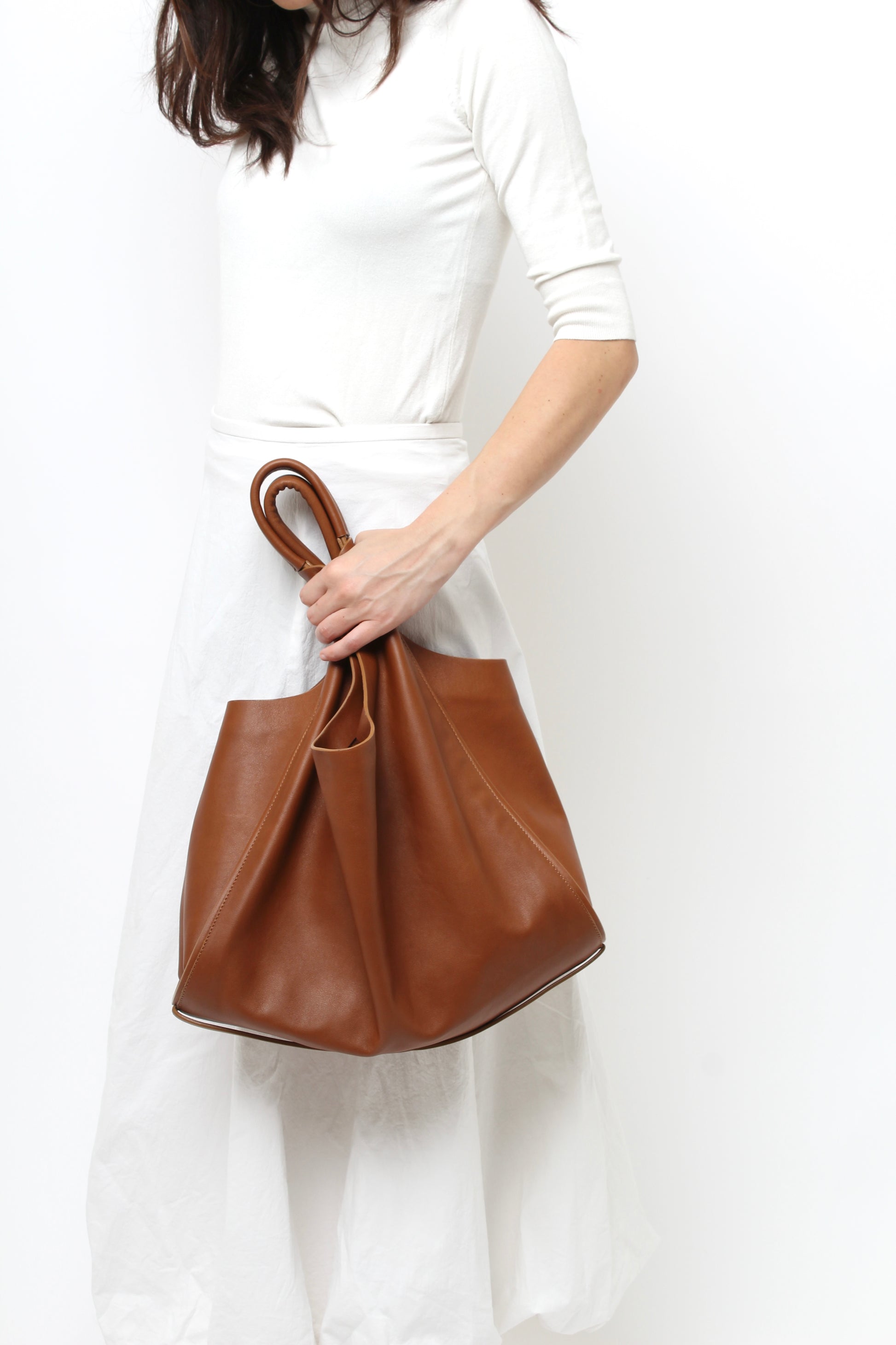 Minimalist elegance in a practical format – the EDVIGE TOBACCO CALF is a large, unlined calfskin bag designed for refined simplicity and daily use.