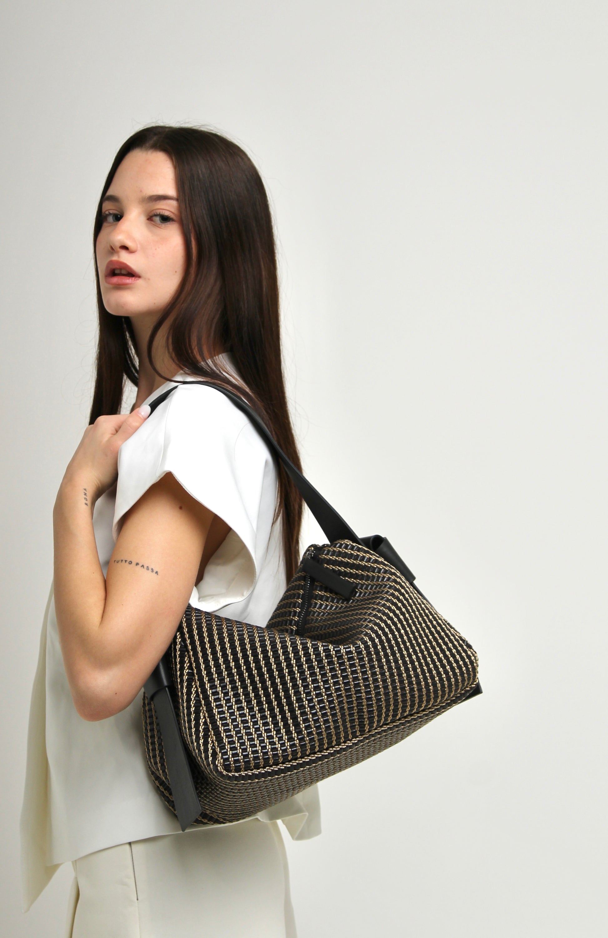 Its structured silhouette and functional zip closure make it the ideal companion for day-to-night use, combining artisanal tradition with contemporary design.