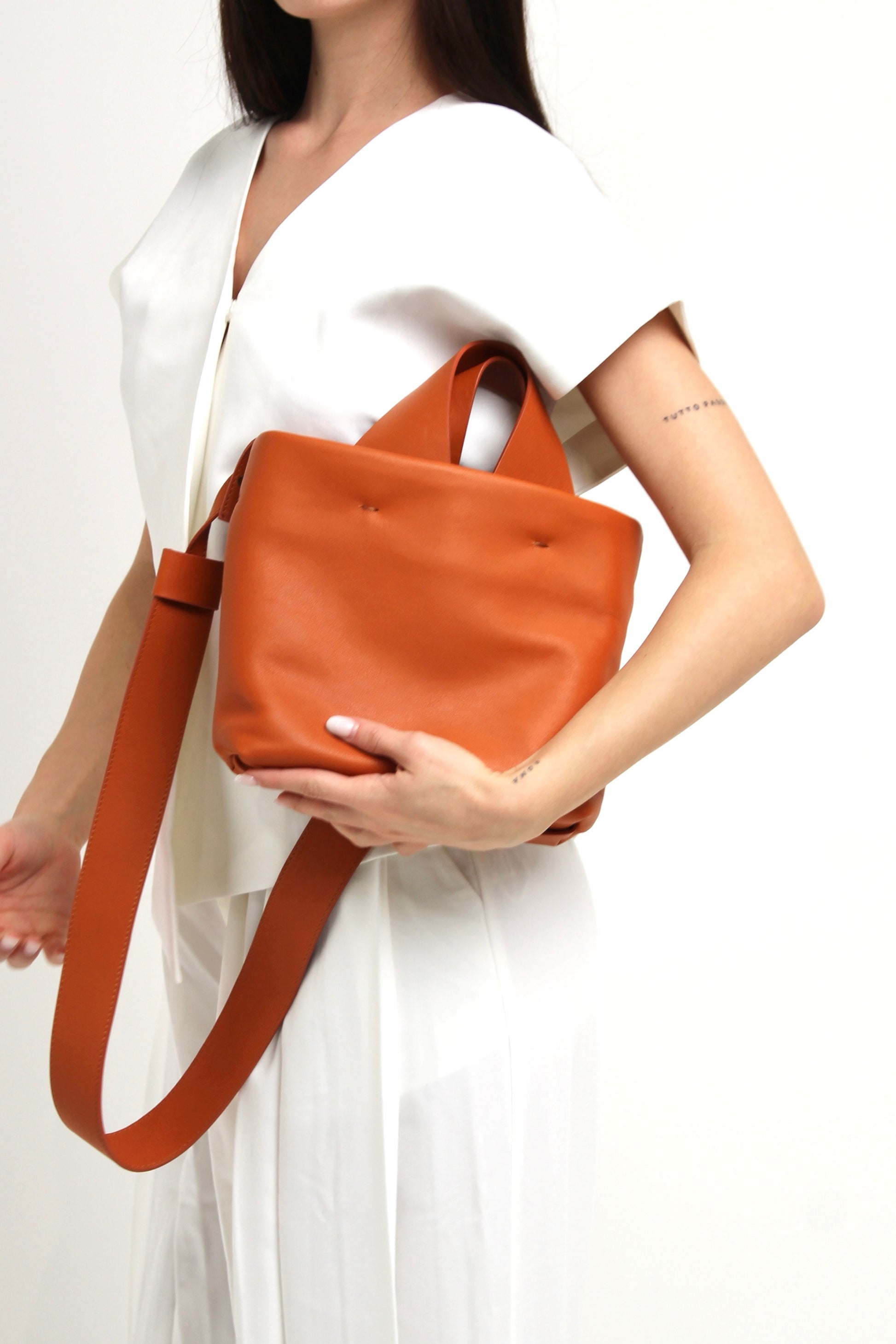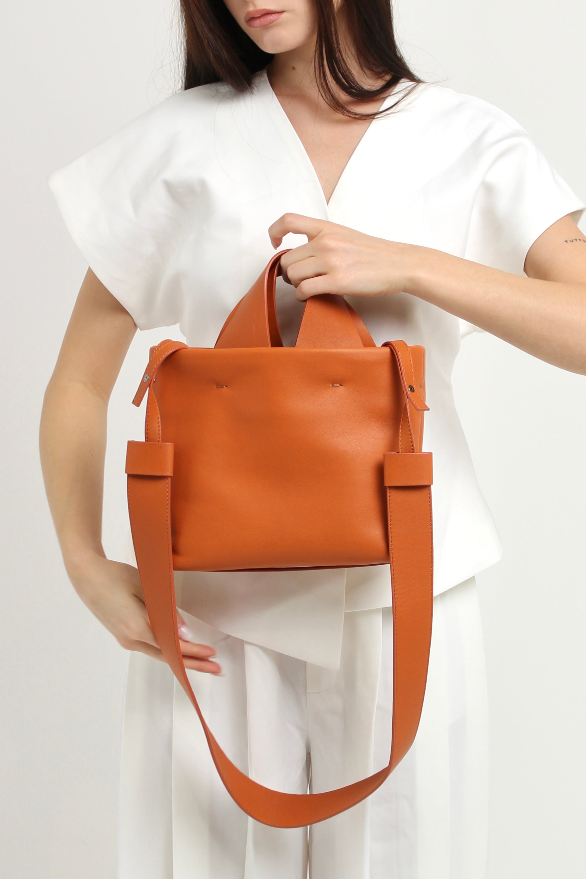 Small Italian Handmade Orange Leather Bag