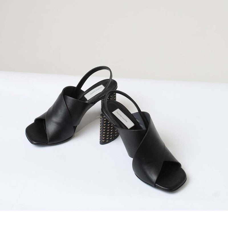 Classic black meets artistic design – the VIOLA BLACK NAPPA features soft lambskin leather, a 90 mm silk-covered heel, and meticulous Italian construction for an elevated everyday or evening look.