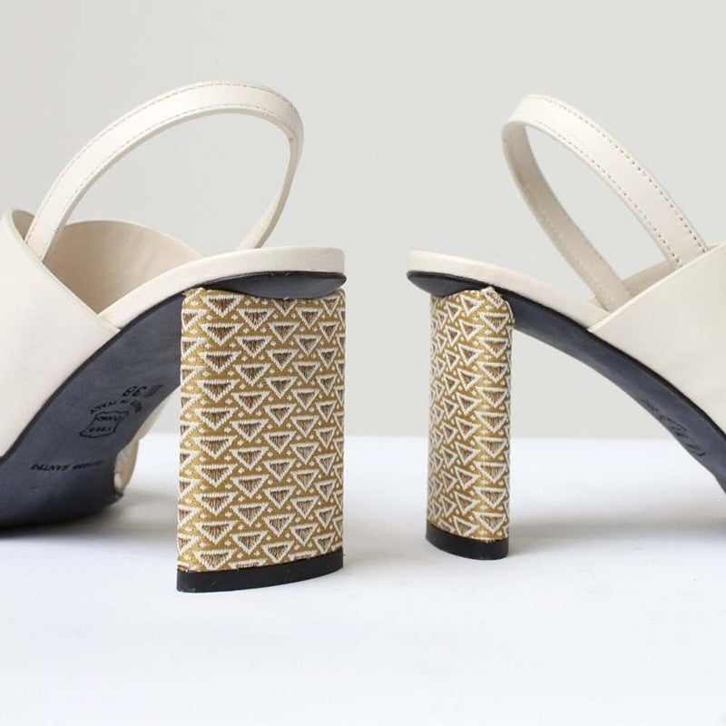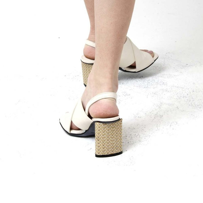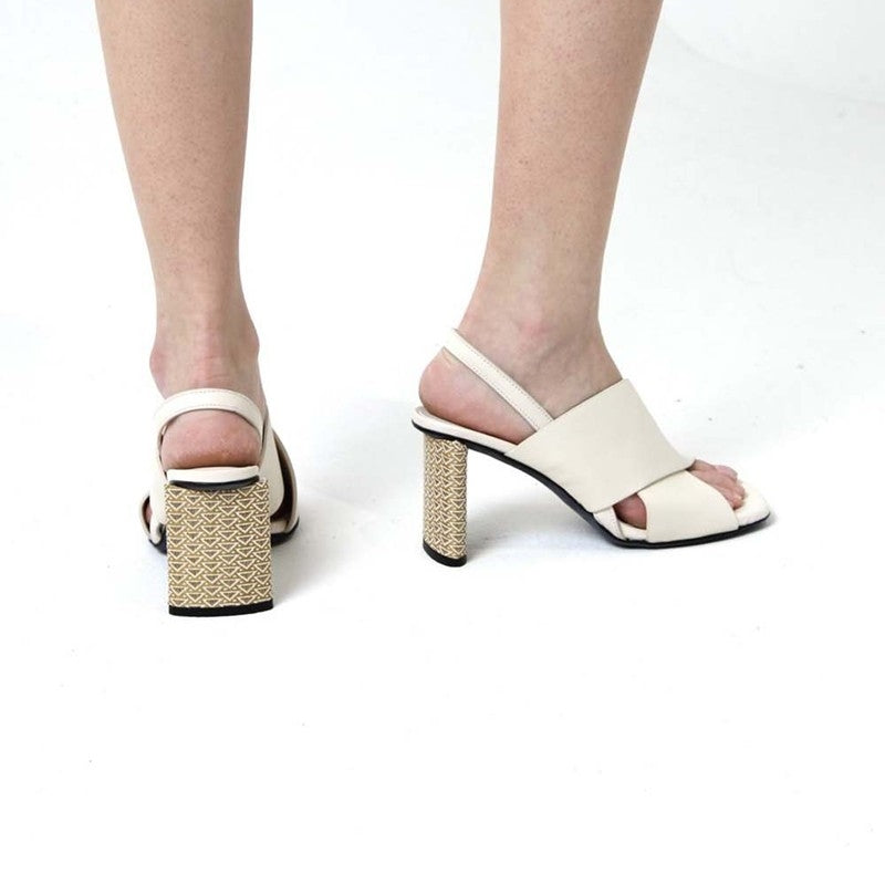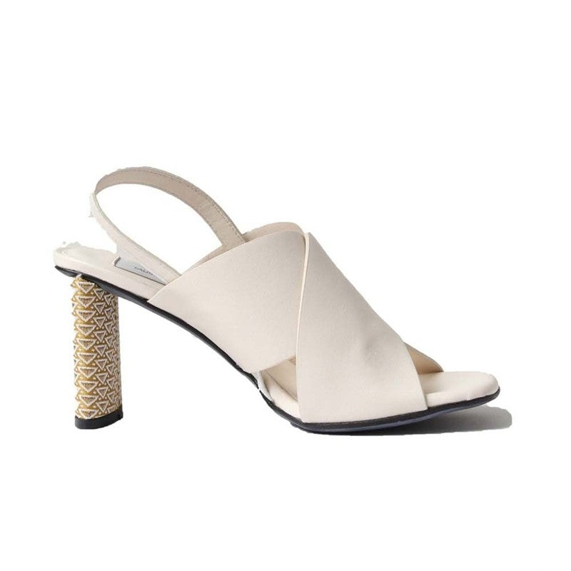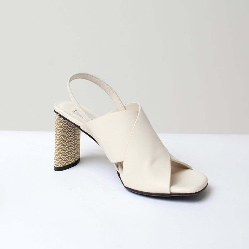 Feminine elegance with a luxurious twist – the VIOLA MILK NAPPA is a refined sandal in soft nappa lambskin with a unique 90 mm heel wrapped in fine silk fabric.